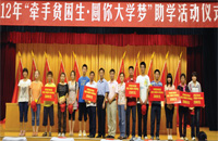 2012年9月5日,在東港區(qū)慈善總會2012年慈善助學(xué)金行動中再捐資12萬元,幫扶60名即將邁進大學(xué)校門的貧困學(xué)子圓了大學(xué)夢。