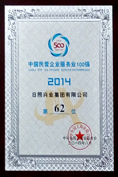 ·2014年8月,興業(yè)集團(tuán)排名“中國民營企業(yè)服務(wù)業(yè)100強(qiáng)”第62位