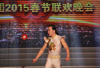 《星光大道》年度六強(qiáng)、被譽(yù)為“舞臺(tái)開心果”的陸海濤登場(chǎng)獻(xiàn)唱自己的新歌《好媳婦》,原汁原味的東北風(fēng)味唱腔幽默風(fēng)趣,引爆現(xiàn)場(chǎng)氣氛,他還親切地與觀眾互動(dòng),快速切換模仿模式,分別用楊坤、趙本山、劉歡、騰格爾、殷秀梅的聲腔表演歌曲《無(wú)所謂》,惟妙惟肖,博得現(xiàn)場(chǎng)一陣陣掌聲;集團(tuán)春晚常青樹——興業(yè)社區(qū)文體活動(dòng)俱樂(lè)部的中老年朋友們精心編排了舞蹈《幸福如意》,舞出了6萬(wàn)業(yè)主“住在興業(yè),一起幸!钡男穆暎淮笮腿似粱(dòng)節(jié)目《我是興業(yè)小蘋果》,將臺(tái)上、臺(tái)下融為一體,整個(gè)演播大廳變?yōu)闅g樂(lè)舞動(dòng)的海洋;歌伴舞《愿得一人心》浪漫纏綿,表達(dá)了祝福天下有情人終成眷屬的美好心愿;2008年曾作為特邀演員參演興業(yè)春晚的雜技演員周天,再次登臺(tái)帶來(lái)全新雜技表演《抖空竹》,他技藝超群,令人目不暇接,引得現(xiàn)場(chǎng)觀眾一陣陣驚呼贊嘆。