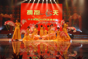 張開(kāi)堅(jiān)定的臂膀 擁抱希望的春天 “擁抱春天”興業(yè)集團(tuán)2009年春節(jié)聯(lián)歡晚會(huì)隆重舉行 鼠去牛來(lái)辭舊歲,龍飛鳳舞慶新春。1月17日,“擁抱春天”興業(yè)集團(tuán)2009年春節(jié)聯(lián)歡晚會(huì)在日照廣播電視演播大廳隆重舉行。丁杰、王建國(guó)、韓金軍、趙文強(qiáng)、劉永漢、申作華、李春賢等領(lǐng)導(dǎo)和集團(tuán)工作標(biāo)兵、先進(jìn)工作者,及各分公司的職工代表500多人歡聚一堂,一同興致勃勃地觀看了演出。 整臺(tái)晚會(huì)在歡快、精彩、喜慶的歌伴舞《歡天喜地》中拉開(kāi)了帷幕。旋律優(yōu)美的歌舞器樂(lè)表演《日照,我眷戀的故鄉(xiāng)》,深情的表達(dá)了興業(yè)人對(duì)家鄉(xiāng)的熱愛(ài);公司王鵬的獨(dú)唱《今天》唱出現(xiàn)代人對(duì)生活的執(zhí)著追求;興業(yè)房產(chǎn)的姑娘們自編自演的舞蹈《趕!,惟妙惟肖的表現(xiàn)出了海邊人的趕海樂(lè)趣。小品《牛老板買房》來(lái)源于生活、取材于銷售工作,通過(guò)小品中的牛老板對(duì)銷售人員的現(xiàn)場(chǎng)考驗(yàn),進(jìn)而義無(wú)反顧的買興業(yè)房子這一主題,再現(xiàn)了興業(yè)房產(chǎn)旨在用服務(wù)贏得客戶,用真誠(chéng)打動(dòng)業(yè)主,堅(jiān)持走品牌戰(zhàn)略的路線,小品演員逼真到位的表演逗的臺(tái)下的觀眾捧腹大笑;興業(yè)房產(chǎn)副總許愛(ài)華和興業(yè)世紀(jì)嘉園社區(qū)阿姨們帶來(lái)的太極拳和劍術(shù)表演,剛?cè)岵?jì),相得益彰,展示了人們對(duì)中華武術(shù)的傳承與喜愛(ài);激昂高亢的男聲獨(dú)唱《愛(ài)不愛(ài)我》唱出了年輕人的激情,唱出了年輕人的執(zhí)著;小品《以愛(ài)的名義》講述了一名興業(yè)員工和他的妻子在汶川大地震發(fā)生后,無(wú)私捐款的感人故事,展示了興業(yè)員工崇高的精神境界;情到深處,臺(tái)下的觀眾無(wú)不為之潸然淚下。詩(shī)歌朗誦《讓抗震精神永遠(yuǎn)激勵(lì)我們向前》將整臺(tái)晚會(huì)推向了高潮,通篇道出了興業(yè)人在汶川發(fā)生震災(zāi)后,積極捐款、捐物、獻(xiàn)血、生產(chǎn)救災(zāi)板房、赴川援建、幫助災(zāi)區(qū)同胞重建家園的感人場(chǎng)景,表現(xiàn)了興業(yè)人在國(guó)家災(zāi)難面前一馬當(dāng)先、甘于奉獻(xiàn)的高度社會(huì)責(zé)任感。京韻大鼓《重整河山待后生》表達(dá)了對(duì)災(zāi)區(qū)的美好祝愿;歌曲《中國(guó)龍》表達(dá)了興業(yè)人的愛(ài)國(guó)情懷;來(lái)自興業(yè)汽配的裴玉用近乎專業(yè)的唱功為大家演唱的歌曲《天路》和青島永杰公司表演的《新疆歌曲串燒》給我們帶來(lái)了別開(kāi)生面的異域風(fēng)情;伴著夢(mèng)幻般音樂(lè)的魔術(shù)《畫(huà)中人》,其換衣玄機(jī)著實(shí)讓大家猜摸了一番;歌舞表演《走進(jìn)新時(shí)代》歌頌了中國(guó)改革開(kāi)放三十年的蓬勃發(fā)展,表達(dá)了興業(yè)人對(duì)祖國(guó)的無(wú)限熱愛(ài);本場(chǎng)晚會(huì)的主題歌,原創(chuàng)歌曲《擁抱春天》充分展示了興業(yè)人團(tuán)結(jié)協(xié)作、奮勇拼搏、共度寒冬、擁抱春天的堅(jiān)定信心和美好祝愿,將晚會(huì)再次推向高潮。晚會(huì)最后在《明天會(huì)更好》的優(yōu)美旋律和對(duì)新年美好的祝福聲中落下了帷幕。 本場(chǎng)晚會(huì)全部是由興業(yè)集團(tuán)員工自編、自演、自導(dǎo),節(jié)目?jī)?nèi)容健康向上,突出原創(chuàng),充分體現(xiàn)了興業(yè)集團(tuán)優(yōu)秀的企業(yè)文化和興業(yè)員工良好的精神風(fēng)貌。 整臺(tái)晚會(huì)歷時(shí)近兩個(gè)小時(shí),節(jié)目精彩紛呈,觀眾喜聞樂(lè)見(jiàn)。 據(jù)了解,“擁抱春天”興業(yè)集團(tuán)2009年春節(jié)聯(lián)歡晚會(huì)將于春節(jié)期間在日照電視臺(tái)各頻道播出,將為全市人民奉獻(xiàn)一道精彩的文藝大餐。 |